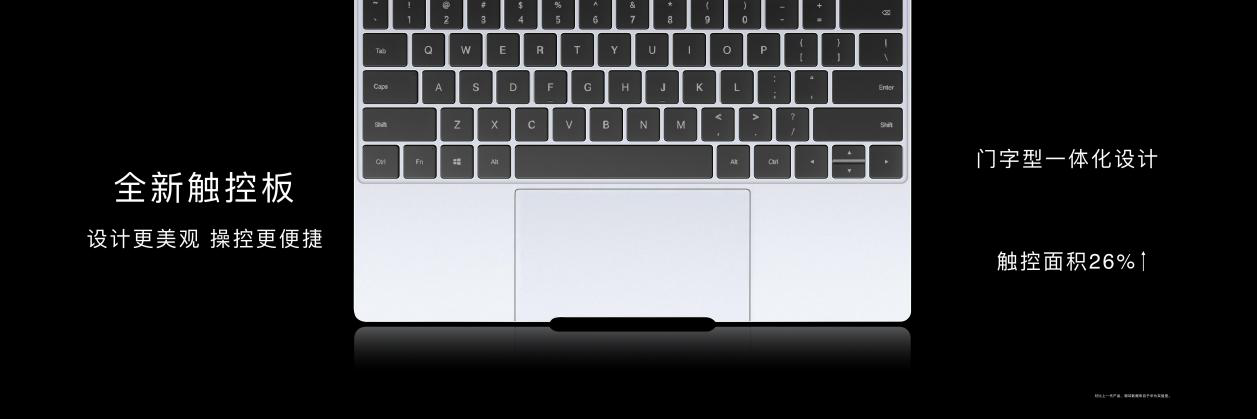 華為MateBook X首度引入的壓力觸控板HUAWEI Free Touch設計,讓用户無論按壓何處,都能通過觸覺振動進行即時反饋,帶來更佳的人機互動和觸控體驗。此次華為MateBook X將華為分享標籤設置在了觸控板之下,感應面積增加到了原來的3倍,只要碰到觸控板就能互聯,同時華為分享感應距離也變大了,距離觸摸板一指寬的距離也能收到感應。這種設計同時提升了觸控板操作面積,觸控板直接延伸至機身邊緣,從傳統的“口”字形設計擴展成“門”字形設計,解決了縫隙問題,外觀設計更加一體化,觸控反應也更加靈敏,操作效率得到提升。