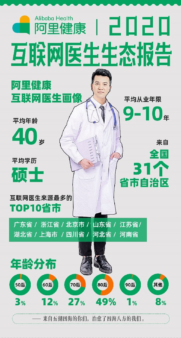 80後佔比近五成 阿里健康醫師節發佈《2020互聯網醫生生態報告》