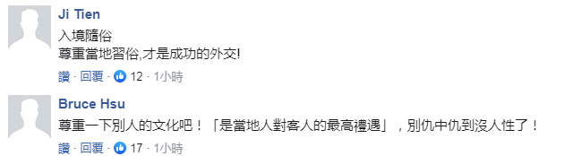 這一事件也隨即引發台灣網友的熱議。大家紛紛表示:“入境隨俗,尊重當地習俗,才是成功的外交!”“想靠抓中國大陸的小辮子來攻擊誣衊,卻忘記了自己的小辮子早就暴露在外!”“真是丟臉丟到家門口!又被打臉!民進黨當局臉都腫成包子了”“總是兩套標準! 昧着良心指責別人! 以遂其仇中之目的! 有多少事人民被欺瞞呢?”“自己有過之而無不及又愛説三道四… 這回又給打臉了”。