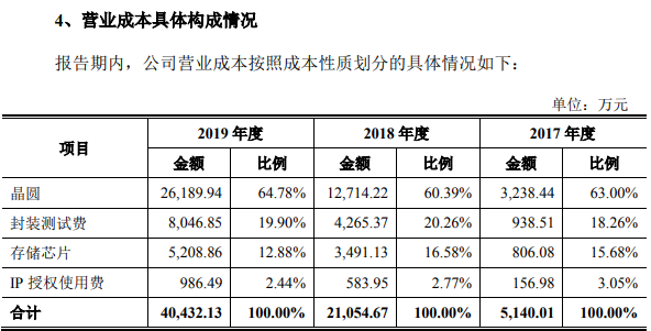 對此,選恆科技稱“晶圓耗購差異,主要系公司採購的晶圓成本未結轉至營業成本中,年末以存貨的形式體現”。但另一方面,根據招股書披露的存貨數據來看,2019年恆玄科技的原材料存貨科目餘額淨增加僅一千萬元;產成品淨增加近四千萬元,考慮到晶圓成本約佔主營業務成本60%左右的份額,對應着淨增加的四千萬元產成品存貨中,包含的晶圓成本僅在2500萬元左右,並不足以解釋同期晶圓的購耗差異。