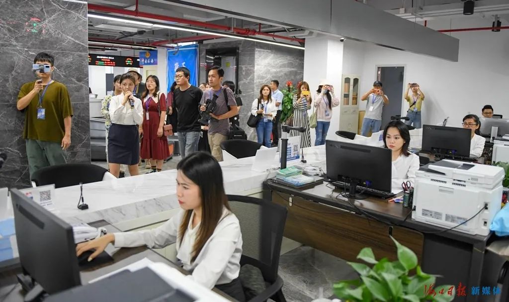 採訪團參觀海口江東新區政務服務中心。海口日報記者 王程龍 攝