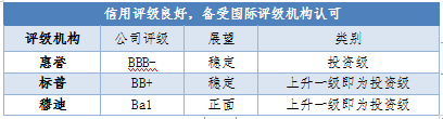 2020年5月,碧桂園位列美國《福布斯》2020年度全球上市公司2000強榜單第111名,較去年上升18名。在2020年8月10日《財富》雜誌發佈的世界500強榜單上,碧桂園位列147位,位居全球房地產行業首位。惠譽、標普、穆迪三大國際評級機構也紛紛看好碧桂園。其中,惠譽給予碧桂園投資級的BBB-企業信用評級。當前民營房企中,只有碧桂園、龍湖、世茂獲得惠譽投資級評級。標普及穆迪也分別給予BB+和Ba1評級,距投資級均只有一級之遙。此外,累計有超過450萬家庭1000多萬人選擇碧桂園,體現了消費者對碧桂園產品力、服務力及市場價值的認可。
