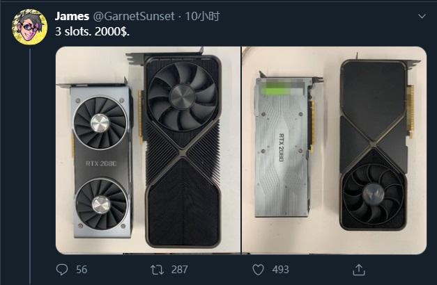 在照片中,爆料者將新款顯卡與2018年發佈的GeForce RTX 2080顯卡進行對比,通過比較我們不難看出,即便是公版,GeForce RTX 3090仍就比GeForce RTX 2080大出好幾圈,厚度也明顯變成三槽。同時,GeForce RTX 3090在顯卡正反兩面都設計有風扇,且兩個風扇大小規格不一樣,由此可以推斷GeForce RTX 3090公版顯卡內部採用了不同規格的PCB板設計。