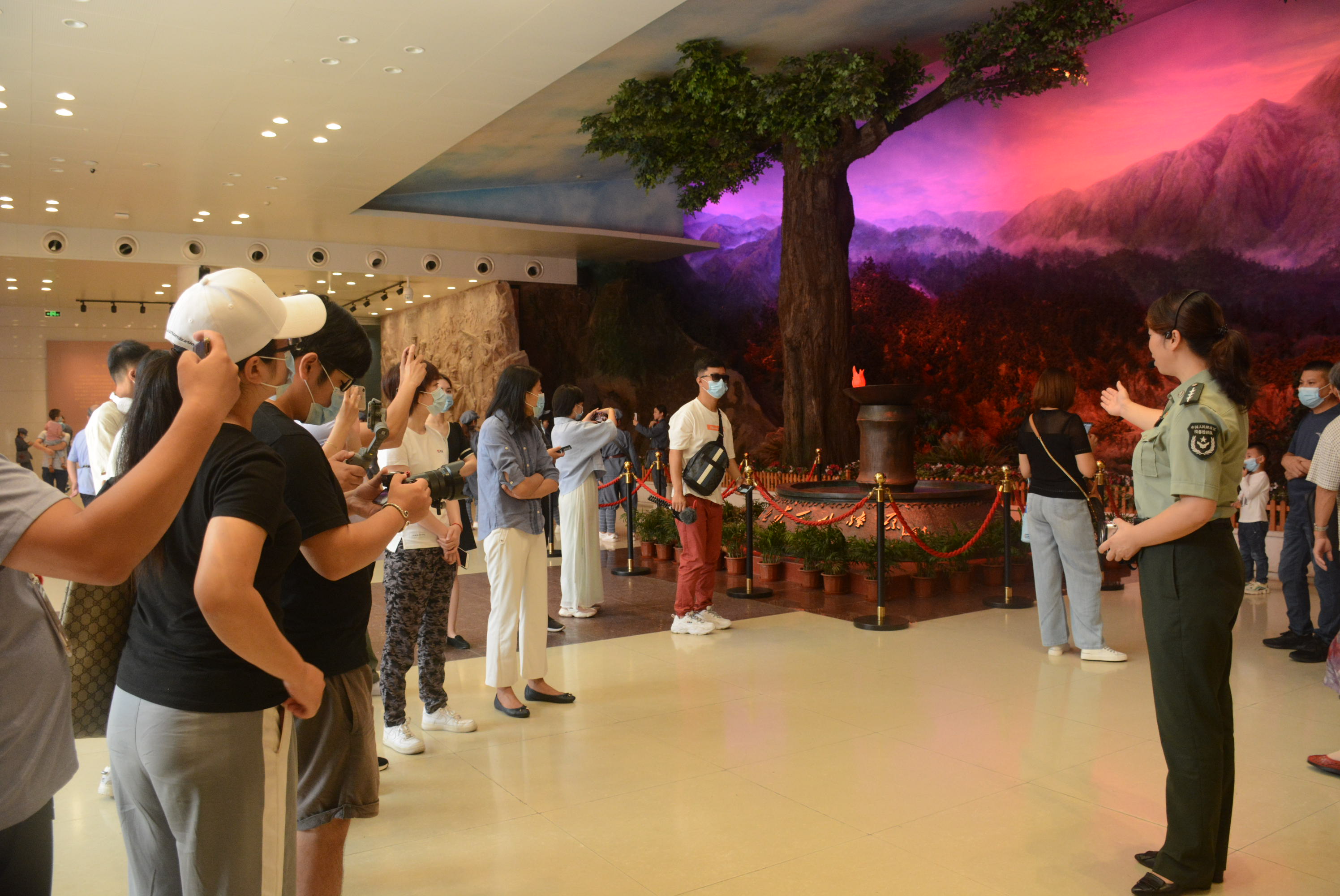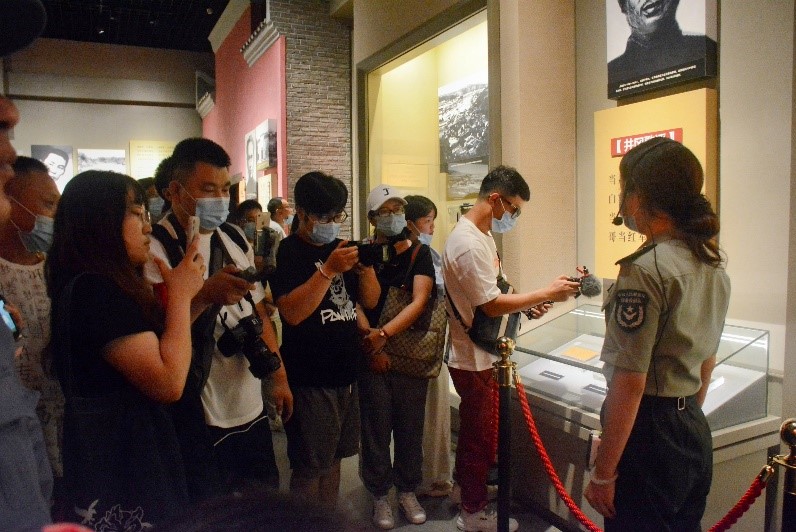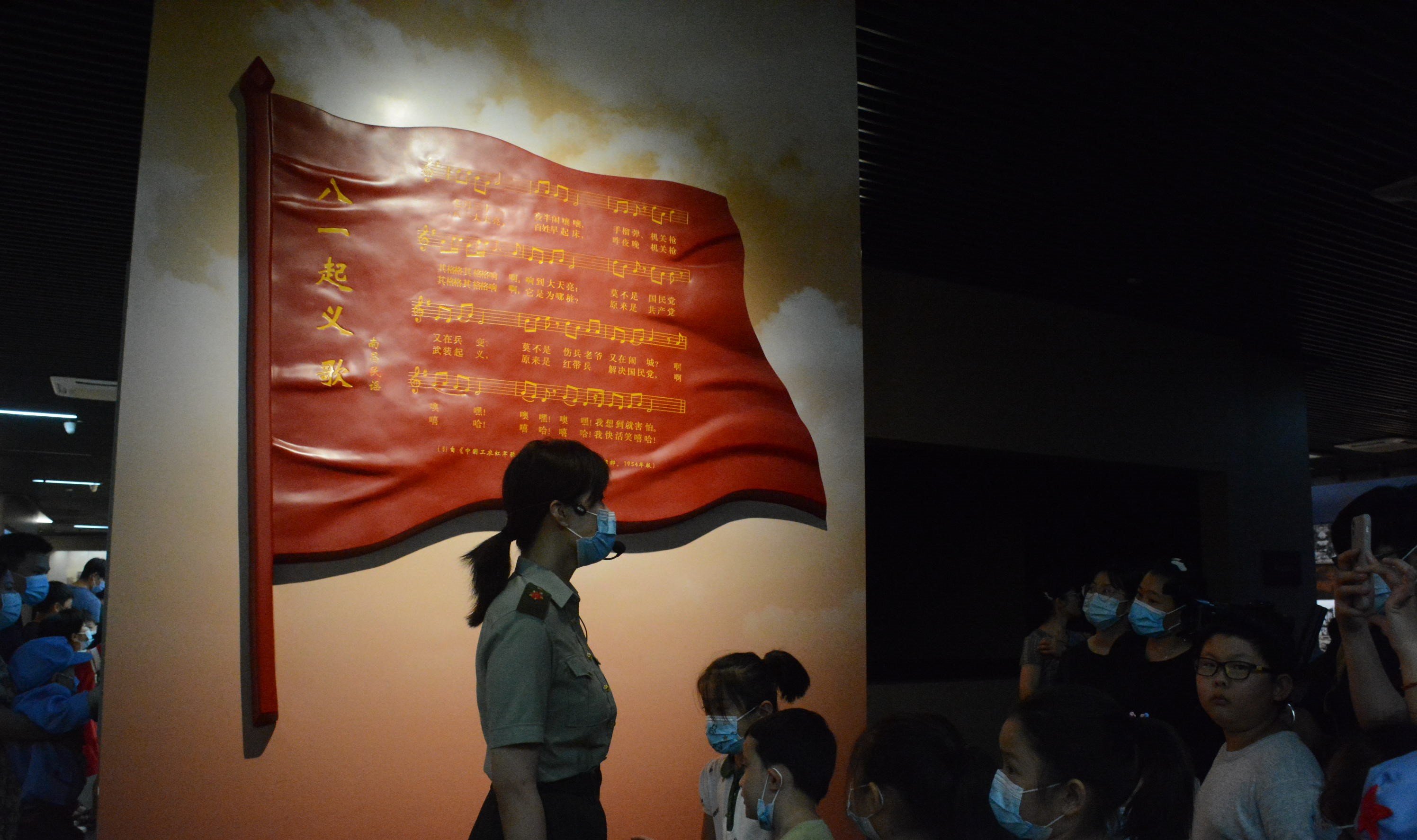 8月25日下午,走訪團一行來到江西南昌八一起義紀念館,聆聽革命先輩、人民英烈的感人事蹟,參觀瞻仰革命遺蹟,共同回顧中國共產黨人艱苦卓絕的奮鬥歲月。“八一大天亮,老百姓早起牀,昨夜晚機關槍,其格格其格格響啊,它是為哪樁?原來是共產黨武裝起義,原來是紅帶兵解決了國民黨。”在聆聽講解過程中,講解員演唱的《八一起義歌》吸引了眾多媒體和觀眾,當南昌起義勝利後,這首膾炙人口的歌謠——《八一起義歌》便在民間流傳起來。隨後,走訪團一行了解了“馬燈照亮紅帶兵前行之路”、“《紅燈》週刊指引革命青年積極鬥爭”、“一張承載着堅定信念的登記表”等故事。