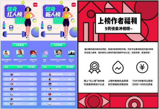 8月31日,小紅書發佈8月健身創作者榮譽榜,以當月漲粉量、粉絲互動量、視頻播放量為核心指標進行排序,選出了最受用户歡迎的10位“紅人”和10位“新人”。國際健身博主帕梅拉居紅人榜首,奧運冠軍吳敏霞來到小紅書剛滿3個月,就位居紅人榜第五。