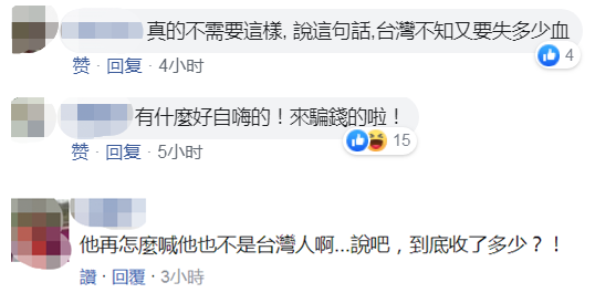 有島內網友説,維斯特奇爾再怎麼喊也不是台灣人啊,還讓維斯特奇爾交代到底收了台灣多少錢;“真的不需要這樣,説這句話,台灣不知又要失多少血”。↓