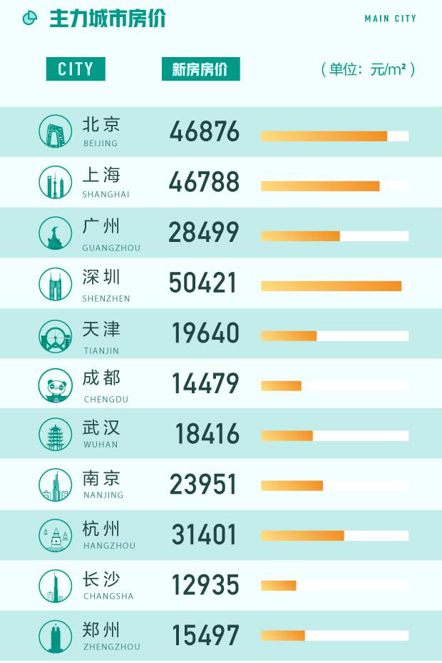 58同城、安居客《8月國民安居指數報告》顯示,8月67城新房在線均價為16481元/平方米,環比上漲0.14%,在67城中有33城新房在線均價環比上漲。主力城市中深圳相比上月略微下降,新房在線均價為50421元/平方米。北京、上海新房均價分別以46876元/平方米和46788元/平方米排名第二和第三。廣州、南京新房在線均價均在2萬元/平方米水平之上,新一線城市中的杭州新房在線均價則達到31401元/平方米,天津跌出2萬元/平方米行列,為19640元/平方米。