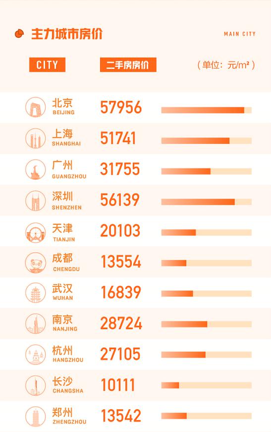《8月國民安居指數報告》統計顯示,8月全國67個主要城市二手房掛牌均價為15683元/平方米,環比上漲0.55%,有48城二手房掛牌均價環比上漲。其中,北京、深圳、上海二手房掛牌均價均穩定在5萬元/平方米以上,其中北京57956元/平方米的水平依舊位列第一,深圳和上海分別以56139元/平方米和51741元/平方米緊跟其後。