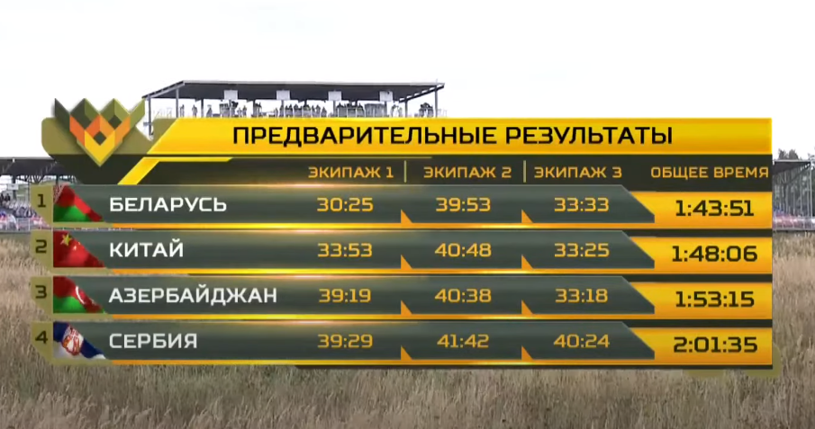 半決賽共有8支隊伍參加,前4名的參賽隊將有資格參加決賽。中國參賽隊在半決賽的第一場小組賽中與白俄羅斯、阿塞拜疆、塞爾維亞同組競技,最終,中國參賽隊以1小時48分06秒的成績位列小組第二名。另一場半決賽小組賽的參賽隊是俄羅斯、哈薩克斯坦、烏茲別克斯坦和吉爾吉斯斯坦,俄羅斯隊以1小時39分24秒的成績獲得小組第一。根據8支隊伍的成績排名,晉級決賽的是俄羅斯、白俄羅斯、中國和阿塞拜疆。