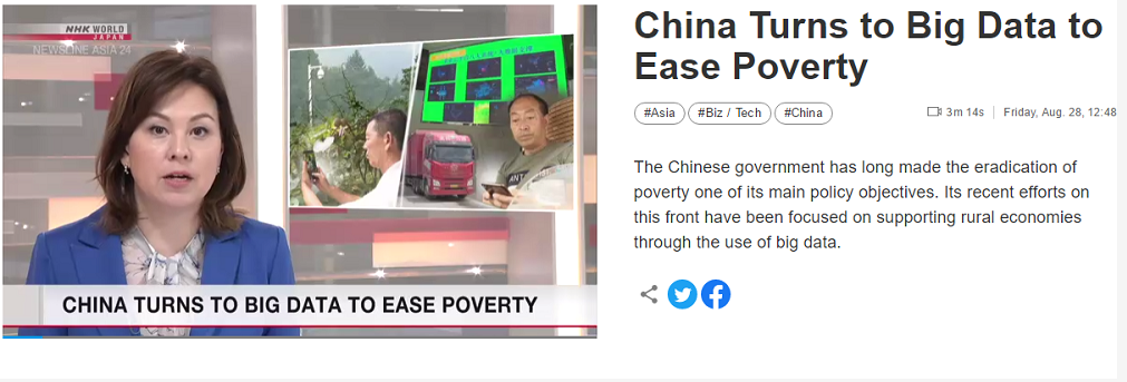 日本NHK電視台 對貴陽 利用大數據產業 發展鄉村經濟和貨物運輸業方面 進行了報道