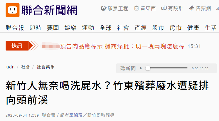 殯葬廢水直接排溪中 台灣新竹民眾受驚嚇,擔心喝下“洗屍水”
