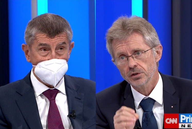 捷克總理巴比什與參議長維特齊在電視節目上辯論