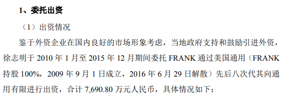 根據公開資料顯示,通用電梯實質上最初發起設立就是由徐志明出資成立的,但曾委託外資企業代為出資,並使通用電梯成為外商投資企業。
