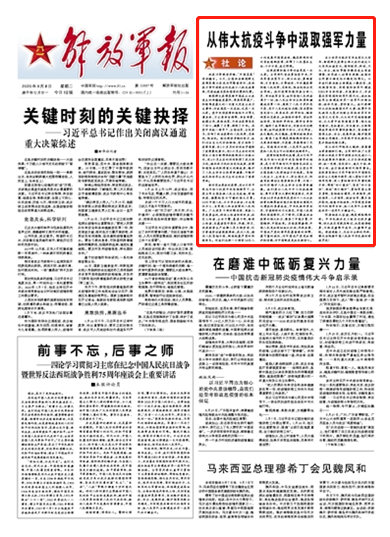 解放軍報社論丨從偉大抗疫鬥爭中汲取強軍力量