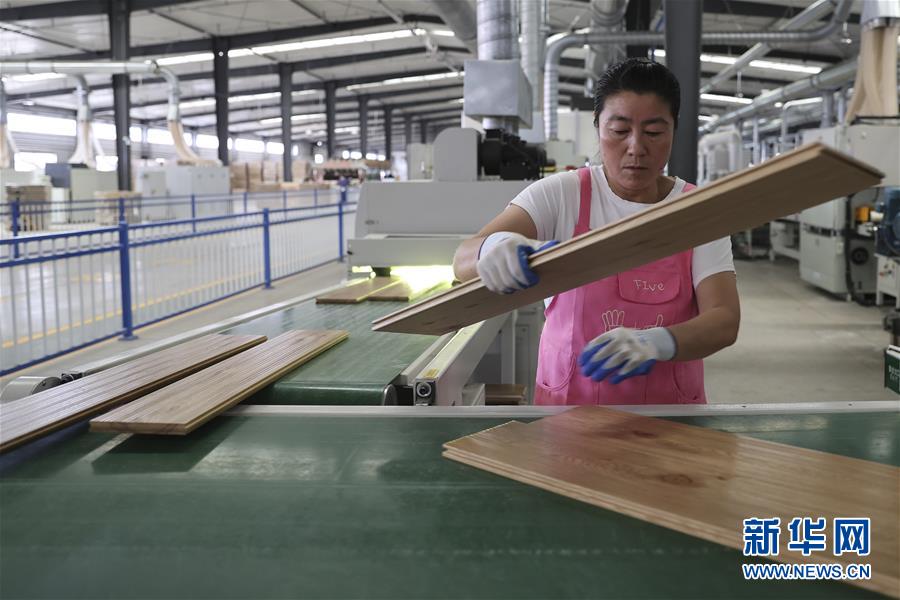 9月9日,工人在中國(黑龍江)自由貿易試驗區綏芬河片區大自然木業有限公司生產車間作業。 新華社發(張濤攝)