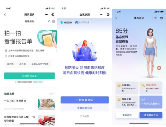 除了體系化知識圖譜的構建,騰訊醫典還充分發揮科技專長,將醫學與AI科技深度融合,推出多個便捷工具,如基於光學字體識別技術的體檢報告解讀,基於視覺感知技術的血氧測試工具,基於關鍵點識別的體態評估等。而這些功能同樣可以通過API的形式,向生態合作方開放共享,為用户提供資訊相關的輕量級、可交互的智慧工具。