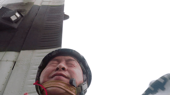 △記者蔣龍千米跳傘