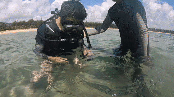 和官兵們一起進行潛水訓練