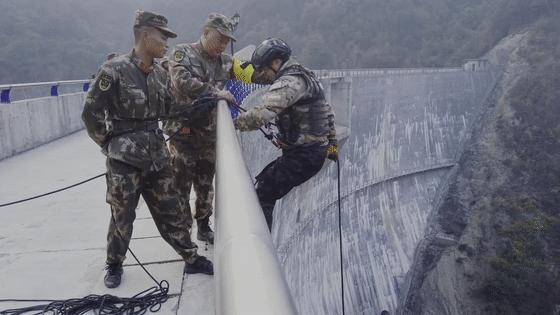 武警特戰隊員進行索降訓練