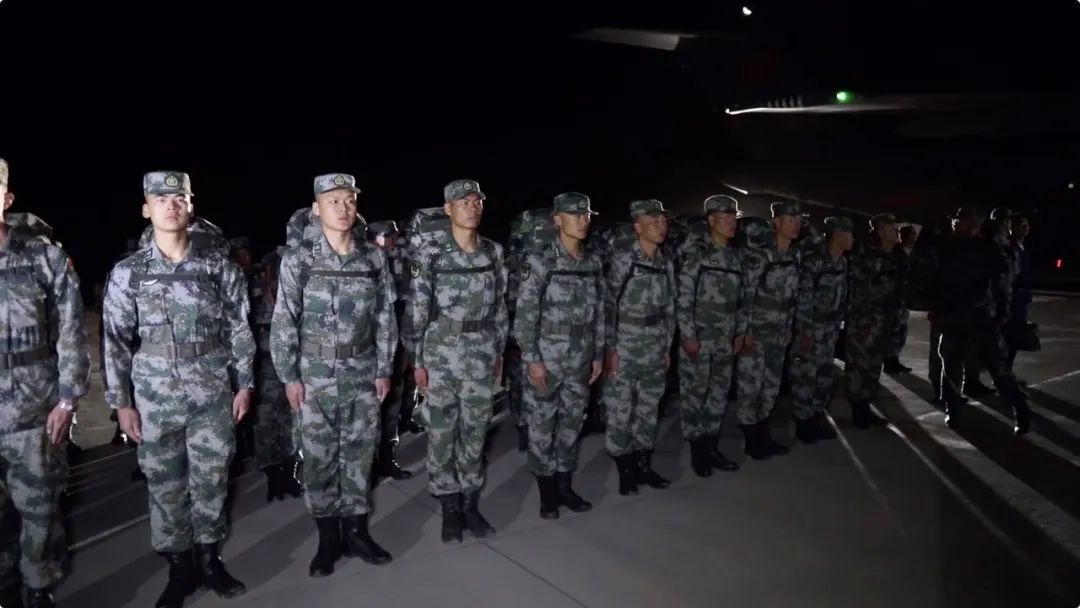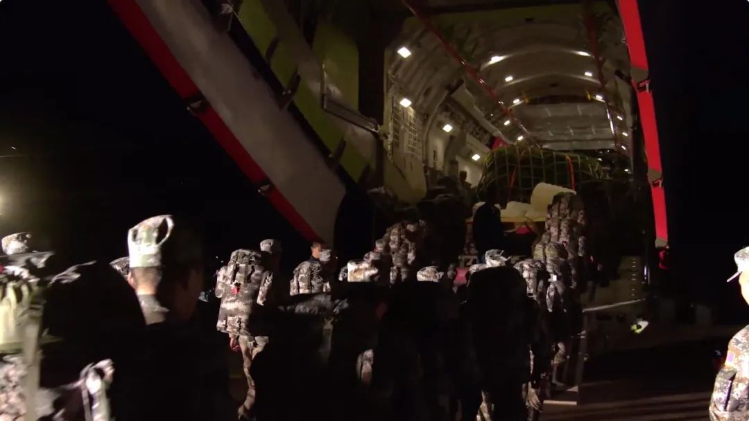 9月11日凌晨一點三十分,甘肅酒泉某軍用機場,參演官兵整齊列隊,指揮員組織部隊有序進行人員、物資裝載。