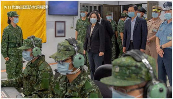 蔡英文還在臉書透露,她今天稍早去視察了任務繁重的台軍防空導彈連,聲稱這是支“小單位、大任務”的鋼鐵勁旅,“國軍還有無數這樣的鋼鐵勁旅,不分晝夜堅守着崗位”,她揚言“國土主權,我們寸步不讓”云云。
