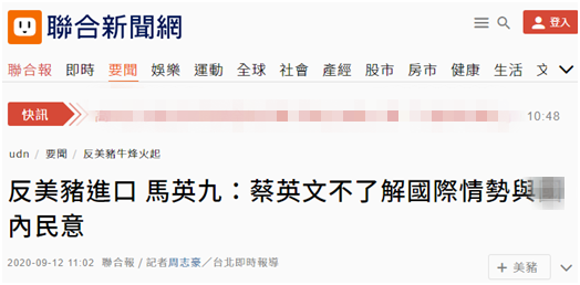 報道提到,馬英九還批評,蔡英文説反對瘦肉精美豬是不瞭解主流民意與國際情勢,事實恰好相反,其實是蔡英文自己不瞭解國際情勢、違背台灣民意;蔡英文開放含瘦肉精美豬政策事前沒有跟豬農、民眾等討論,這樣的決策怎麼可能不失敗。