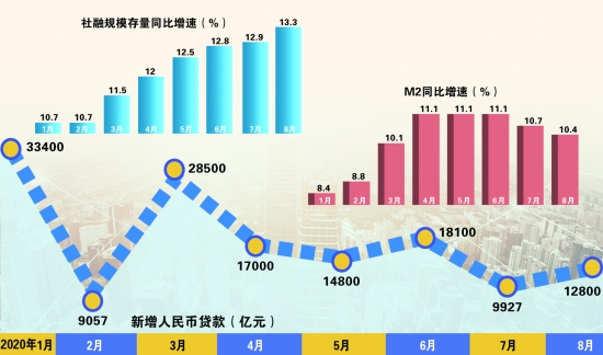 中國人民銀行9月11日公佈數據顯示,8月末,廣義貨幣(M2)餘額213.68萬億元,同比增長10.4%;8月人民幣貸款增加1.28萬億元,同比多增694億元;8月社會融資規模增量為3.58萬億元,比上年同期多1.39萬億元。專家表示,隨着經濟活動持續回暖,未來貨幣政策將更加註重“精準導向”。