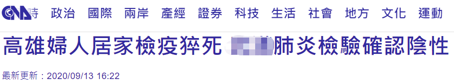 從大陸返台女子居家檢疫期間突然死亡,新冠病毒檢測結果剛剛出爐:陰性