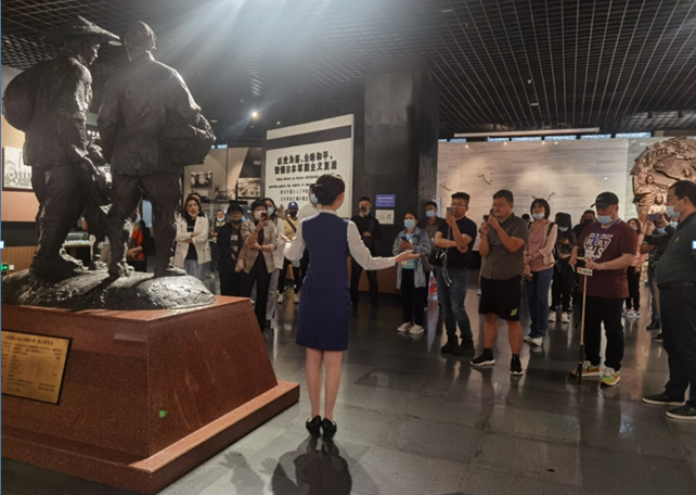 “雄赳赳,氣昂昂,跨過鴨綠江……”在聆聽講解過程中,講解員講述的《中國人民志願軍戰歌》創作史,吸引了眾多媒體和觀眾,1950年,中國人民志願軍入朝時,就是唱着這首歌,雄赳赳氣昂昂跨過鴨綠江的。隨後,走訪團一行參觀了“抗美援朝戰爭全景沙盤”“冰雪長津湖”“鋼鐵運輸線”“無敵坑道”“鏖戰上甘嶺”“奇襲白虎團”等場景,重點聽取了“孤膽英雄——胡修道”、“初心如鑑——‘共和國勳章’獲得者李延年”、“松骨峯阻擊戰”等故事。
