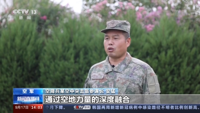 空降兵某空中突擊旅參謀長 安猛: 成立以來,我們邊訓、邊打、邊建,通過空地力量的深度融合,我們迎來了跨越式的發展,目前已基本具備了“空地一體、立體突擊”的能力水平。後期,我們還將繼續探索空中突擊的多型作戰樣式,不斷挖掘人員裝備潛力,努力鍛造一支精飛善打的突擊勁旅。