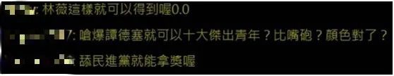 還有網友在台媒評論區留言稱,“不知道她的傑出在哪裏”“原來網紅也可以變成綠色傑出青年”“坐實了台灣已成嘴炮島” 。