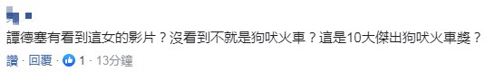 更有人諷刺,“譚德塞有看到這女的影片?沒看到不就是狗吠火車?這是十大傑出狗吠火車獎?”