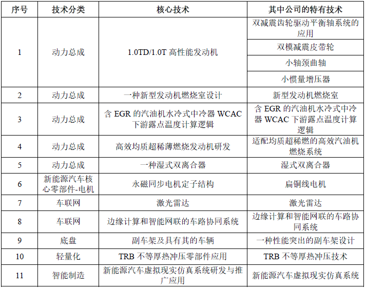 對此吉利汽車在回覆中列舉了該公司擁有的11項核心技術,其中有5項是關於動力總成、2項關於車聯網,電機、底盤、輕量化、智能製造各有一項核心技術。