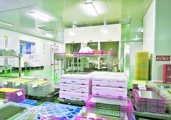 在晶泰科(貴州)光電科技公司淨化車間,工人抓緊生產。