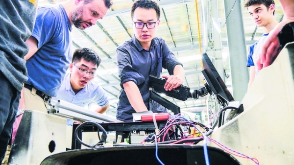 在貴州翰凱斯公司,各國專家協力研究無人駕駛技術。