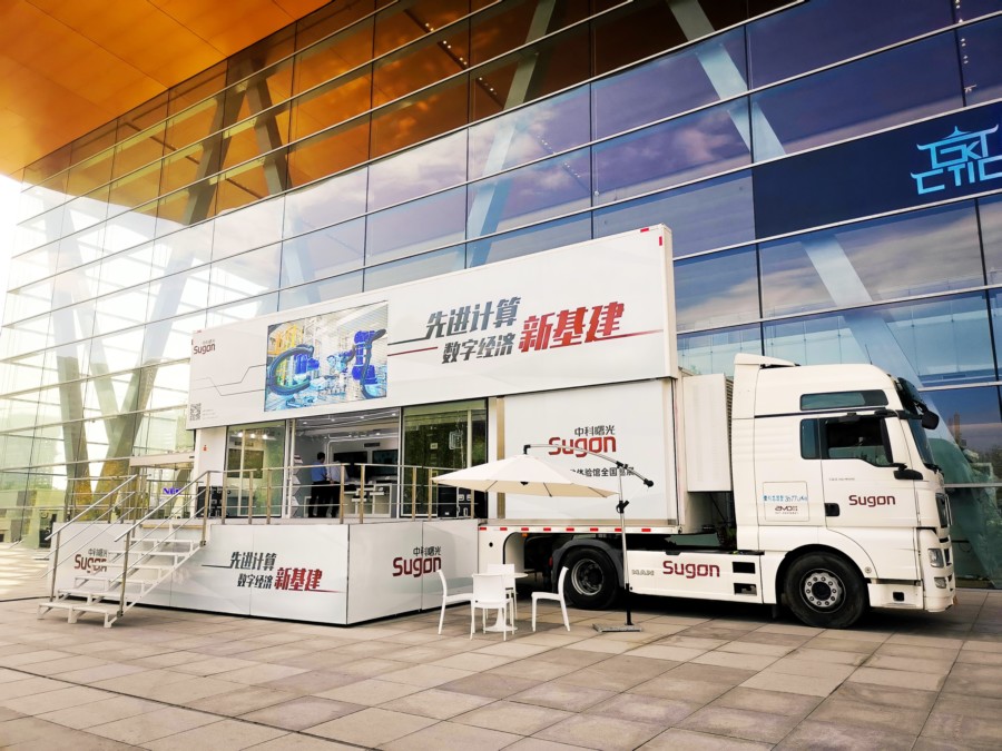 在同期展會上,中科曙光“先進計算移動體驗館”也重磅亮相,通過立體展現和交互體驗,向來自各領域的用户、合作伙伴展示了集諸多創新性技術為一體的硅立方浸沒液冷計算機、性能領先的服務器、存儲設備等自研整機系統,並展示系列基於先進計算技術的解決方案。