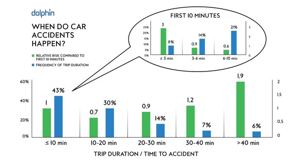 Dolphin Technologies對兩年時段內的4萬名駕駛員的行為進行了分析,以調查交通事故的原因。其中一項調查結果尤其令人關注:25%的事故發生於行車三分鐘內。