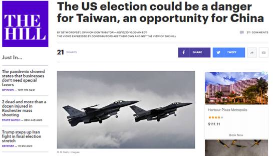 美《國會山報》刊登克羅普希分析台海戰事可能的文章:美國大選對台灣可能是一種“危險信號”,對大陸則可能是一個機會。