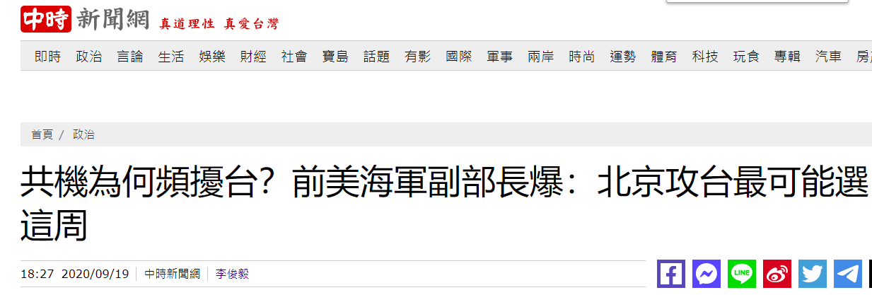 對於近期台海情勢,台灣“中時新聞網”援引《中評社》的報道稱,曾任美國海軍部副部長,立場親台的克羅普希17日在美《國會山報》撰文做出研判。他稱,美國大選對台灣可能是一種“危險信號”,對大陸則可能是一個機會。解放軍最近一系列演習不僅僅是政治信號,也是為對台發動攻擊做軍事準備,目的是在美國及其盟友做出回應之前“征服台灣”。