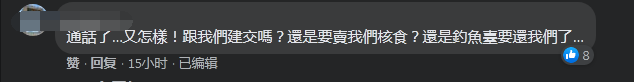 有人稱:“通話了……又怎樣!跟我們‘建交’嗎?還是要賣我們核食?還是‘釣魚台’(即釣魚島)要還我們了……”