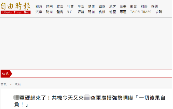 “共機今天又來了”,島內綠媒:“國軍硬起來了”,還喊出“一切後果自負”