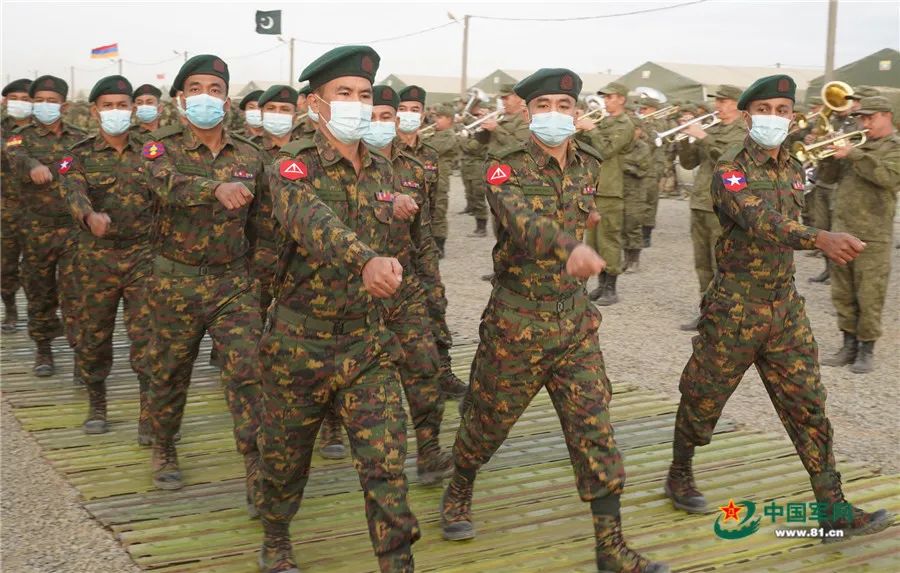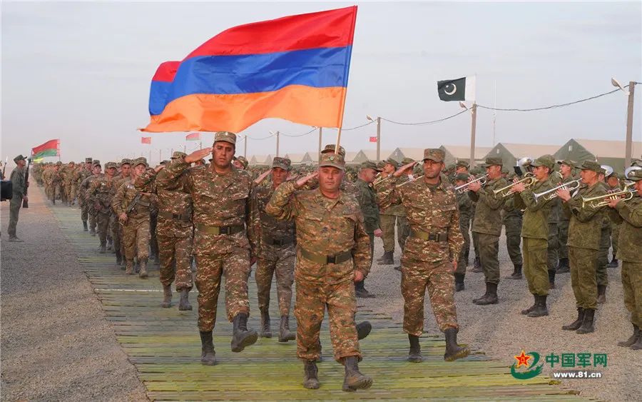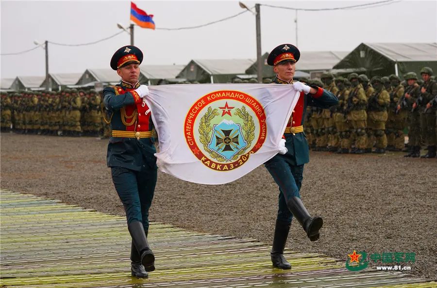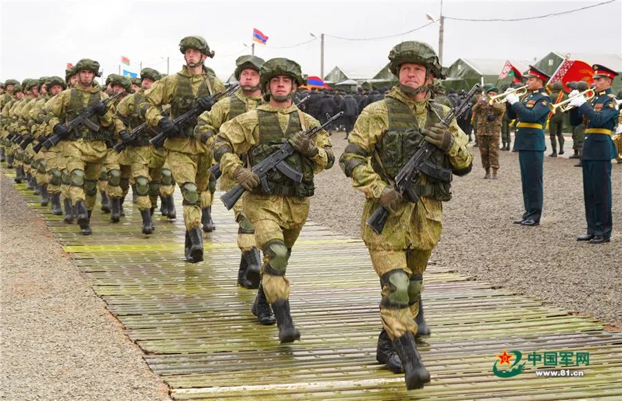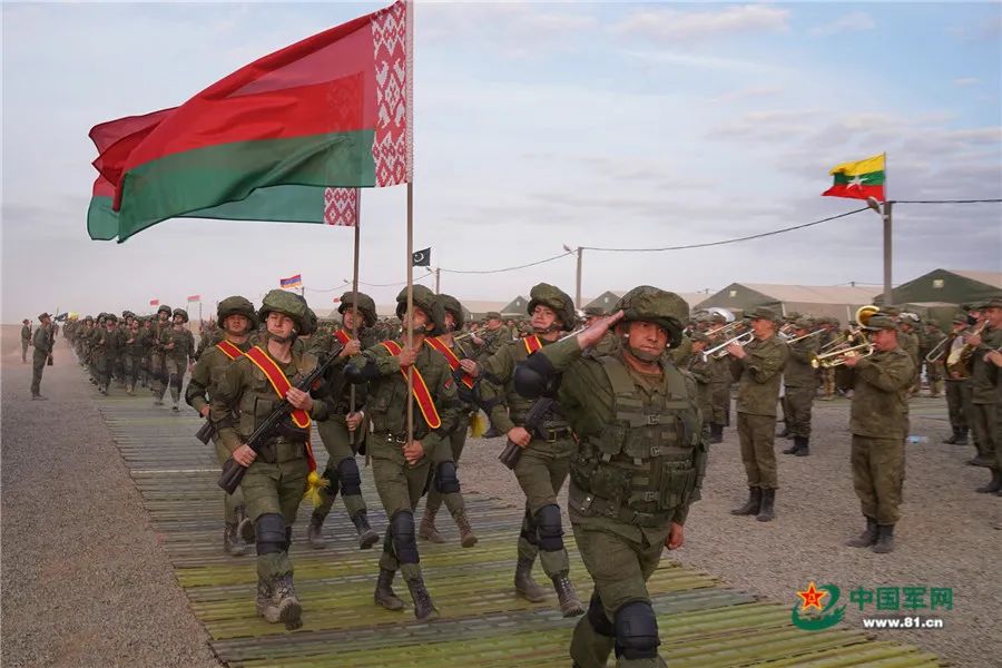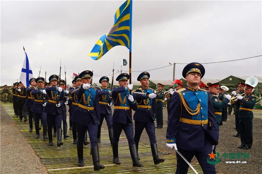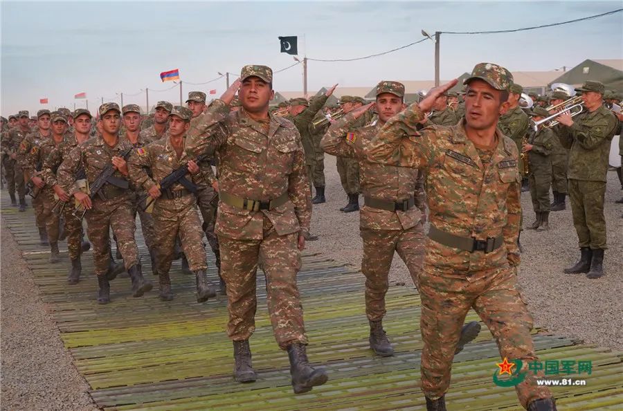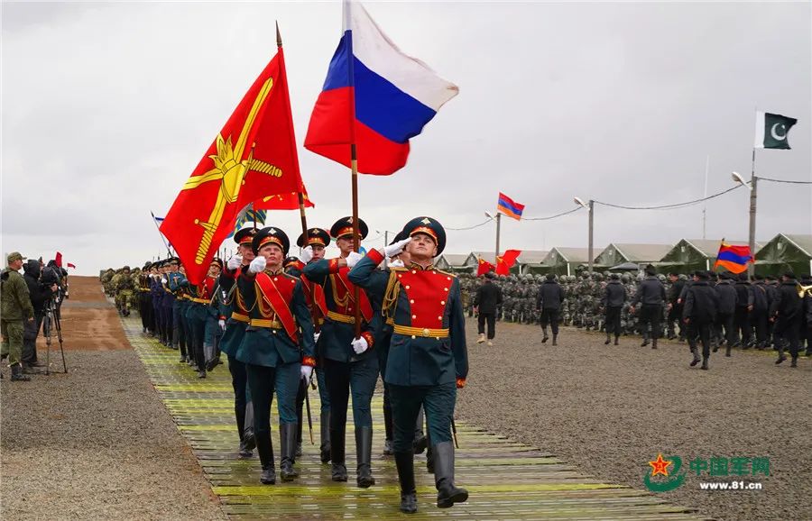 當地時間9月19日12時,俄羅斯阿斯特拉罕州卡普斯京亞爾靶場上禮炮齊鳴、戰鷹翱翔,在俄羅斯軍樂團的伴奏下,來自俄羅斯、中國、白俄羅斯、亞美尼亞、緬甸和巴基斯坦等國參演部隊整齊列陣,英姿颯爽地通過檢閲台,標誌着“高加索-2020”戰略演習正式拉開大幕。