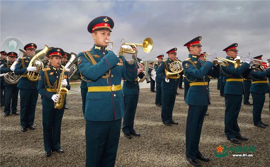 俄羅斯軍樂團在開幕式前奏響樂曲。