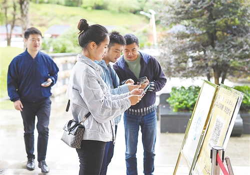 下圖 9月16日,遊客在貴州省銅仁市玉屏侗族自治縣茶花泉景區辦理網上購買門票業務。近年來,該景區與淘寶、美團、攜程等電商合作開通了網上售票業務,遊客通過景區網絡售票平台即可購買門票,瞭解當天遊客數量信息。