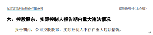 事實上,富淼科技曾在2017年6月首次申報上市,後於2018年1月收到證監會的反饋意見,其中也提到了施建剛被行政處罰的事項,富淼科技的這次上市也未能成功;及至本次2020年5月申報上市,富淼科技申請在科創板上市,並在招股書中單獨披露“報告期內,公司控股股東、實際控制人不存在重大違法情況。”