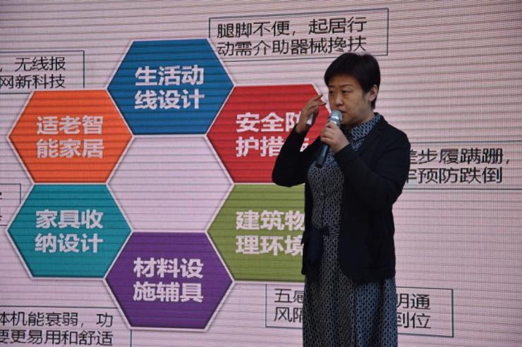 對此,作為適老化家裝探索者、易享生活創始人兼CEO吳曉蓉分享了她的思考。“老年人最怕摔倒,而有的摔傷骨折,會讓老人喪失行動及自理能力。” 吳曉蓉提醒現場老人,從家裝設計角度上來看,地面高差、地磚不防滑、沒有防跌防撞保護等10大問題威脅着老年人居家安全。