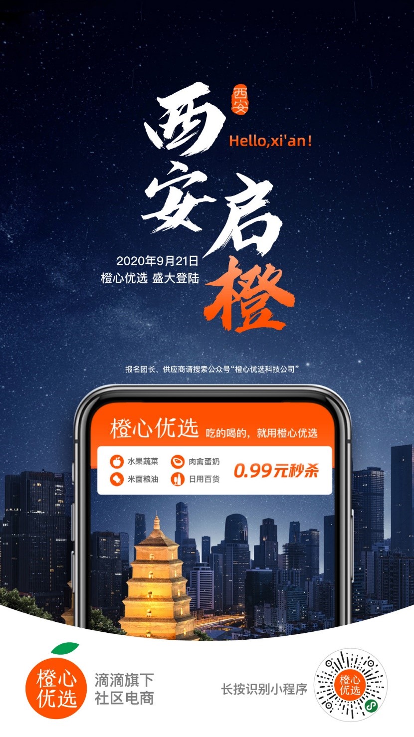 【環球網科技綜合報道】9月21日,滴滴旗下社區電商平台橙心優選正式在西安上線。橙心優選為西安的鄰居們帶來了0.99元秒殺、滿25元減3元、滿50元減8元等多重好禮,一大波消費福利讓西安的鄰居們真切地體會到了在橙心優選的購物樂趣。