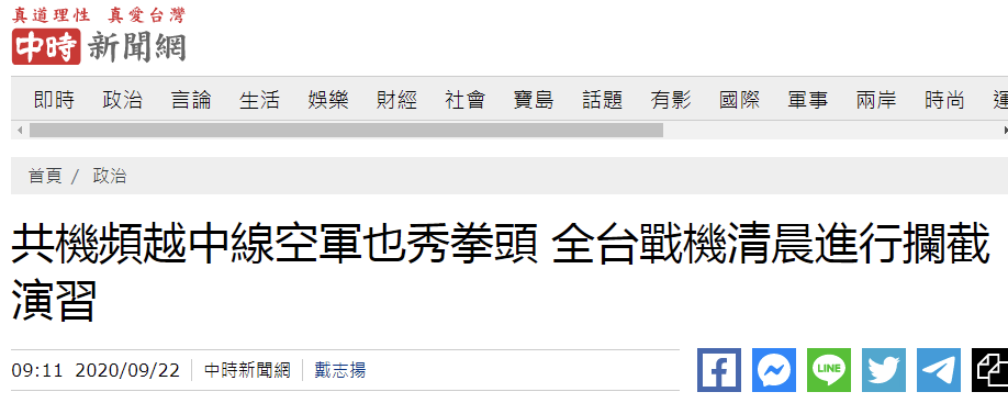 據台灣中時新聞網9月22日報道,解放軍戰機連續4天在台灣西南空域與西北角所謂“海峽中線”附近進行演練,為加強“反制”解放軍戰機,台空軍22日無預警進行“聯翔操演”,全台戰機在清晨5時30分緊急起飛模擬“反應接戰”與“制敵空襲”。報道稱,不少民眾被戰機吵醒,誤以為“共機又來”。