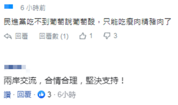 對於此事,有島內網友表示,“民進黨吃不到葡萄説葡萄酸”,也有人稱“兩岸交流、合情合理、堅決支持!”