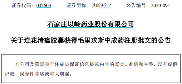 9月22日,以嶺藥業發佈公告,該公司收到毛里求斯衞生健康部核准簽發的中成藥註冊批准文件,批准專利中藥連花清瘟膠囊符合毛里求斯中成藥標準註冊。